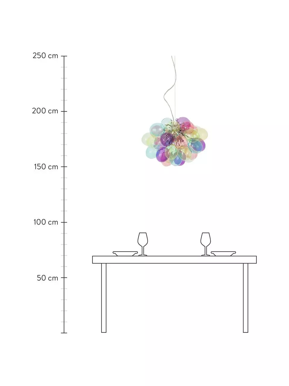 Abhängung von der Decke: höhenverstellbar bis max. H 120 cm