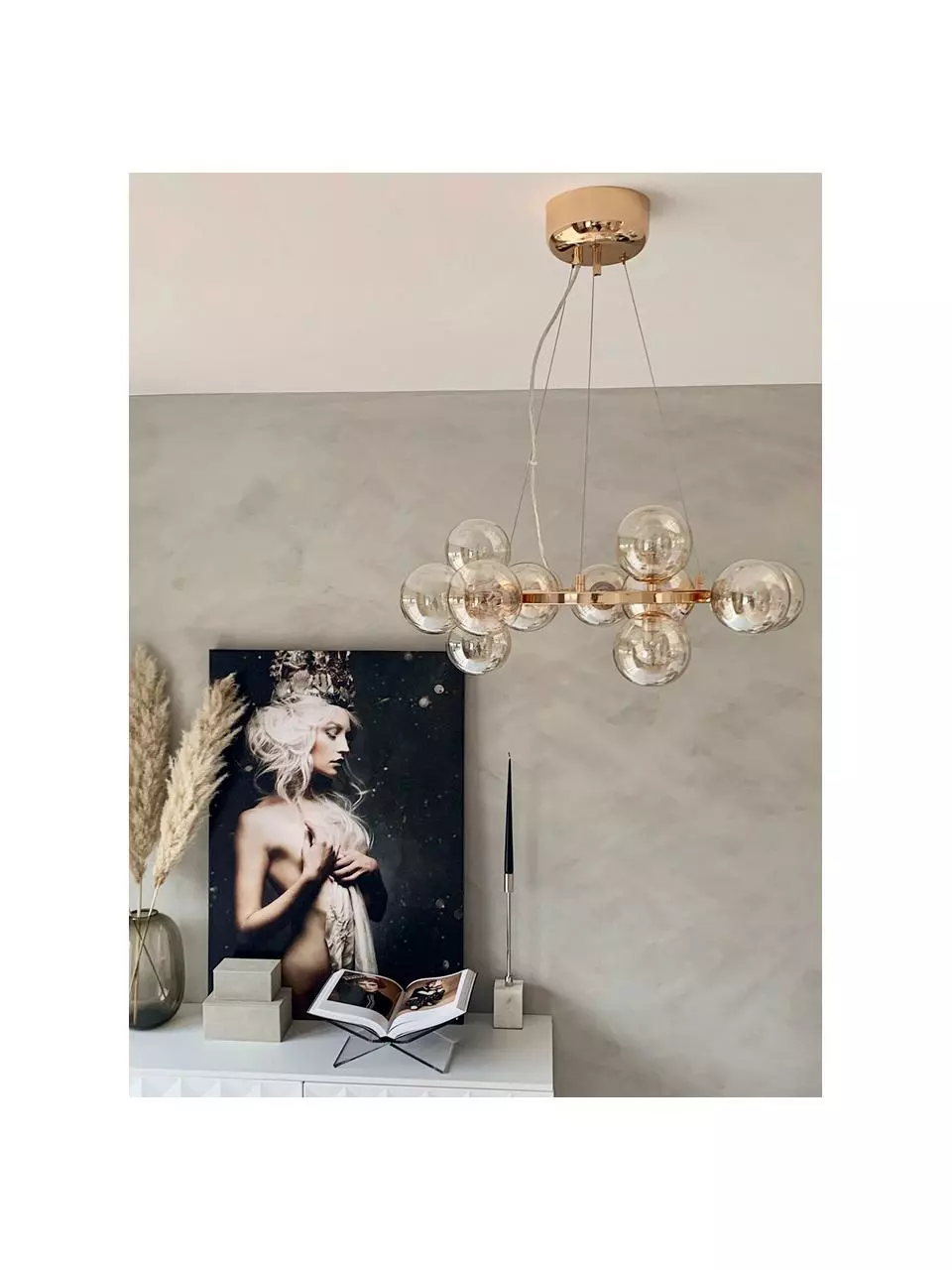 – Mit 15 Lampenschirmen aus mundgeblasenem Glas