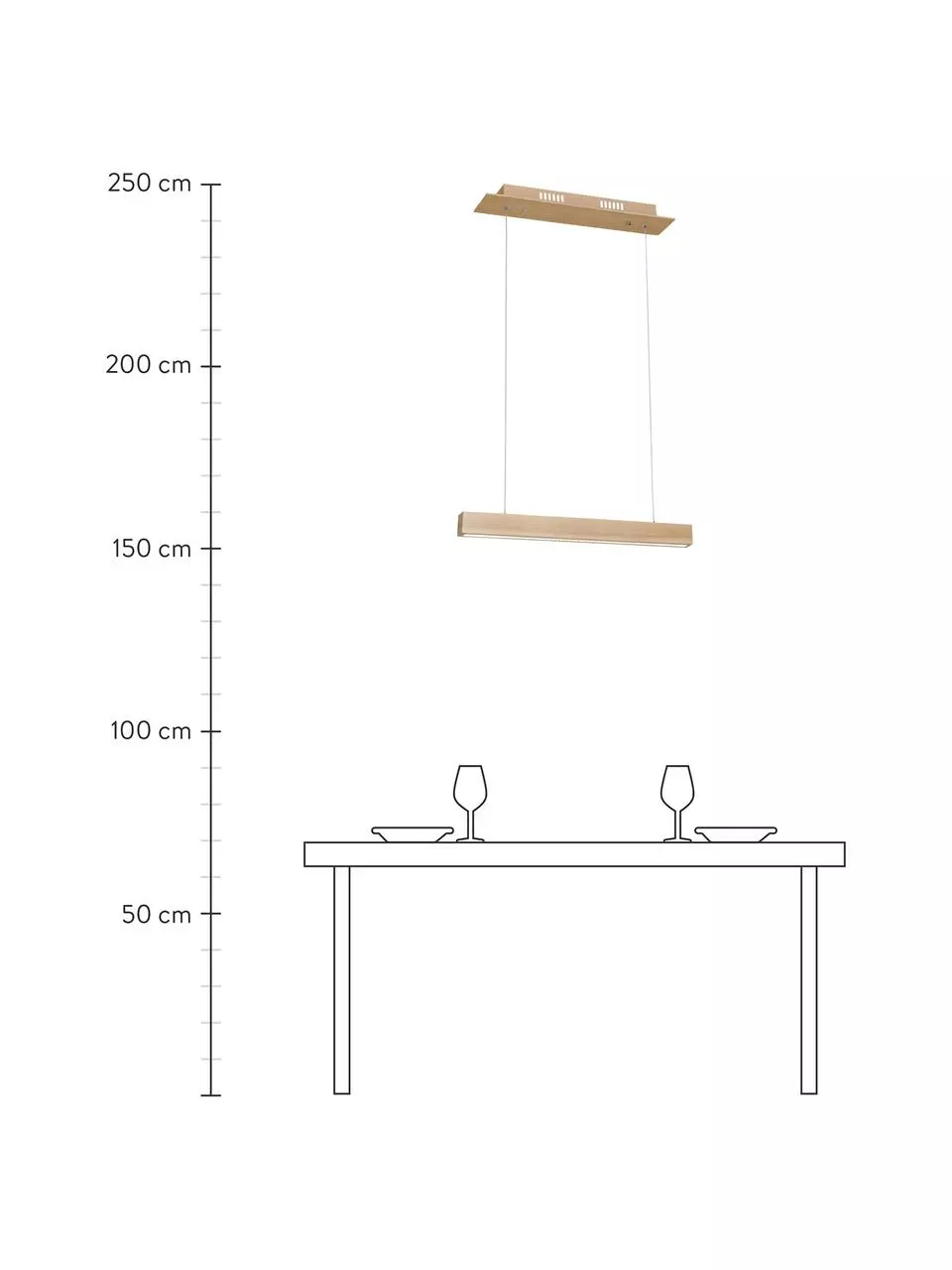 Abhängung von der Decke: höhenverstellbar von H 50 cm bis H 90 cm