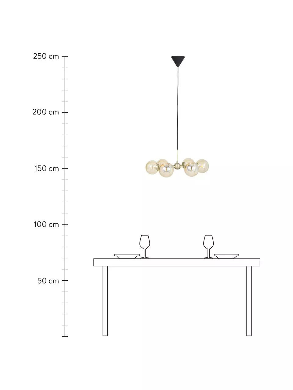 Abhängung von der Decke: höhenverstellbar bis max. H 250 cm