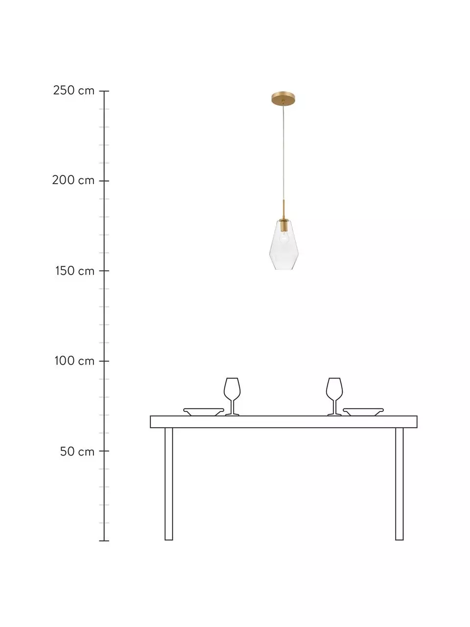 Abhängung von der Decke: höhenverstellbar bis max. H 120 cm