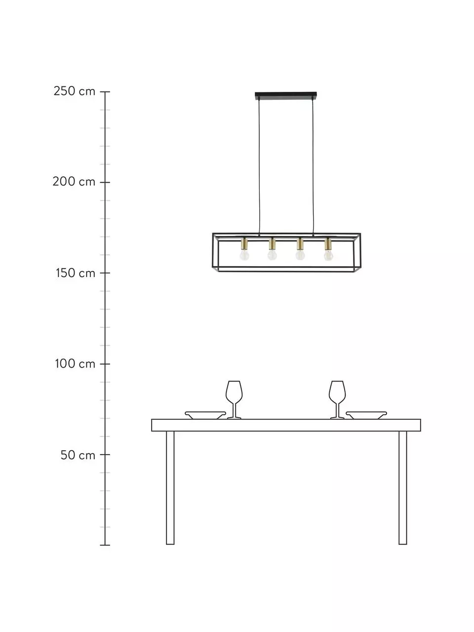 Abhängung von der Decke: bei der Installation höhenverstellbar bis max. H 150 cm