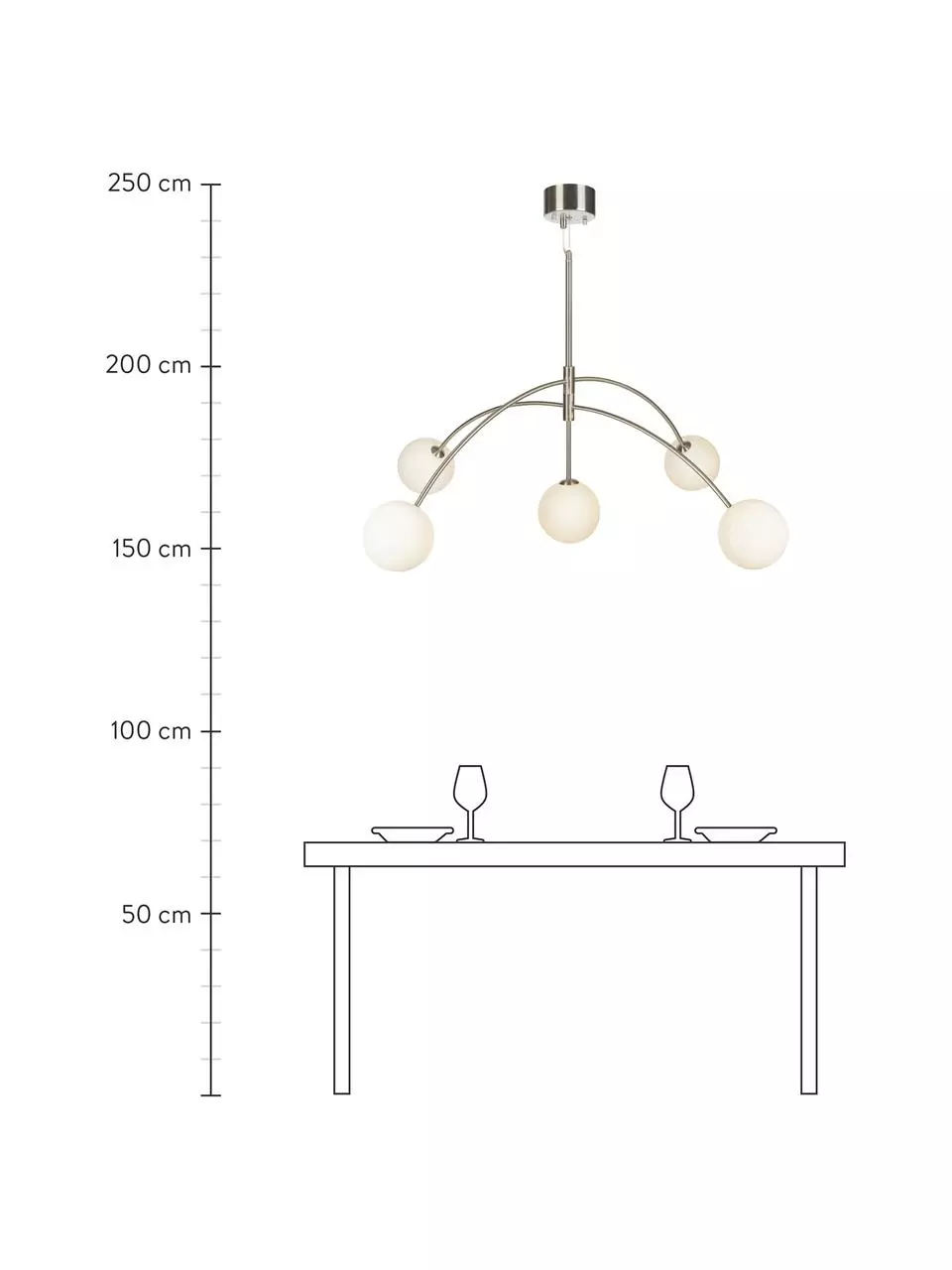 Abhängung von der Decke: höhenverstellbar bis max. H 120 cm