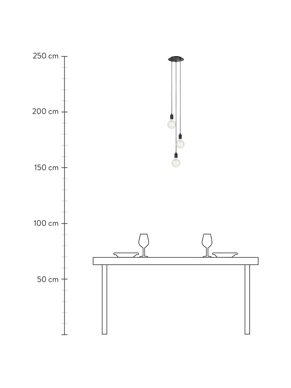 Abhängung von der Decke: höhenverstellbar bis max. H 150 cm