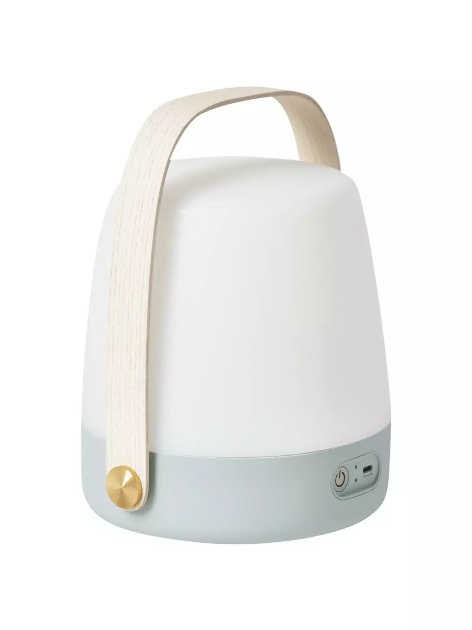 – Mobile LED-Außentischleuchte mit Holz-Griff
