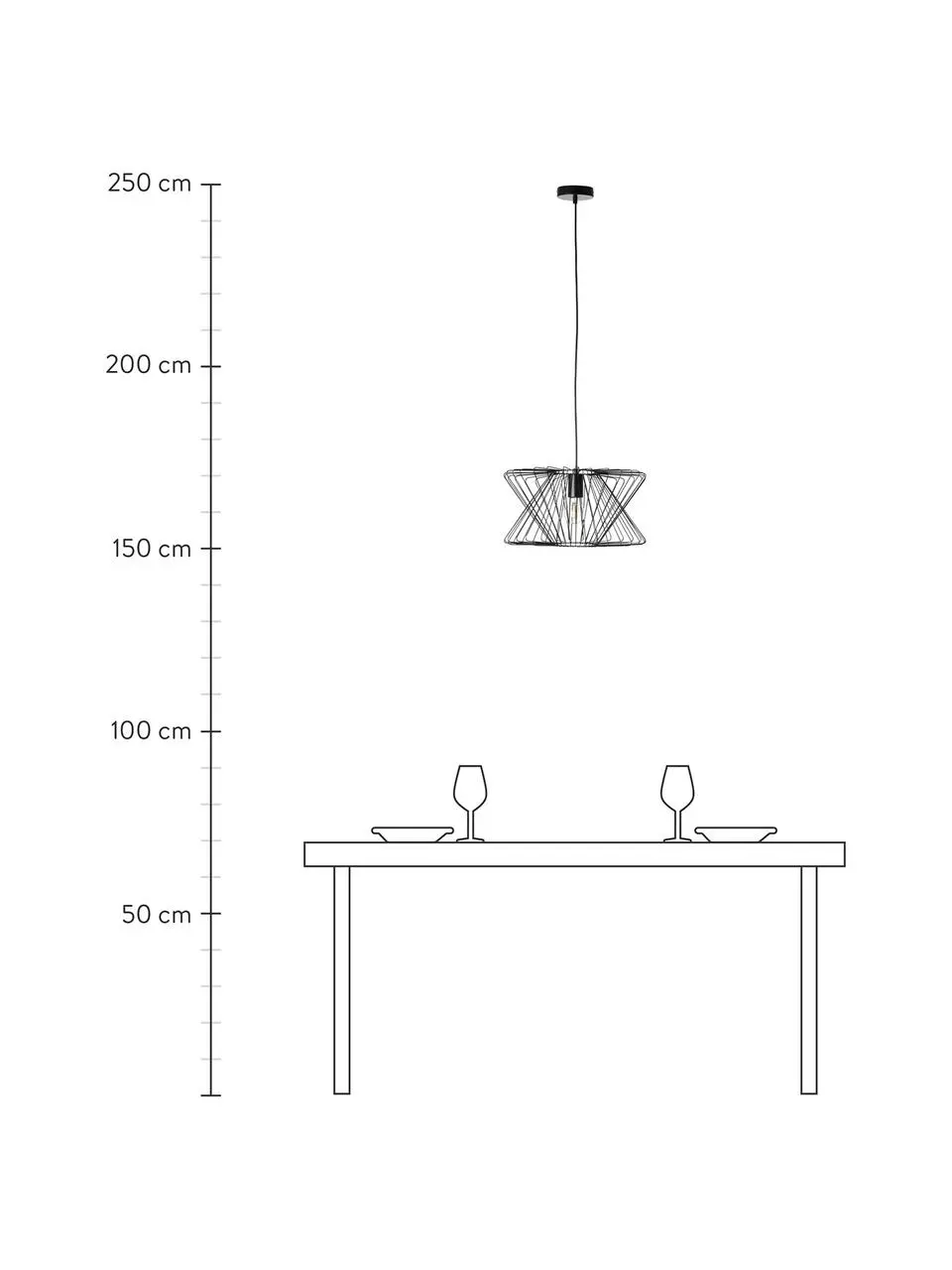 Abhängung von der Decke: höhenverstellbar bis max. H 115 cm