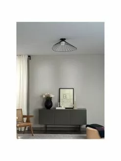 Westwing Collection Deckenleuchte Klea aus Wiener Geflecht in Creme/Braun, Ø 45 x H 30 cm