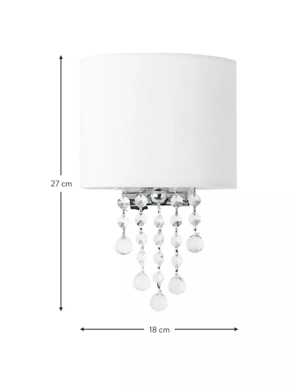 Lampe: B 18 cm, T 14 cm, H 27 cm inkl. Dekokristallglas