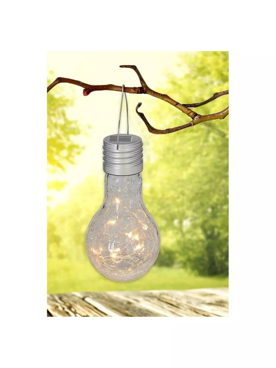 Akku der Solarleuchte wird über die verbauten Solarzellen aufgeladen, Betrieb nur im Solarmodus möglich