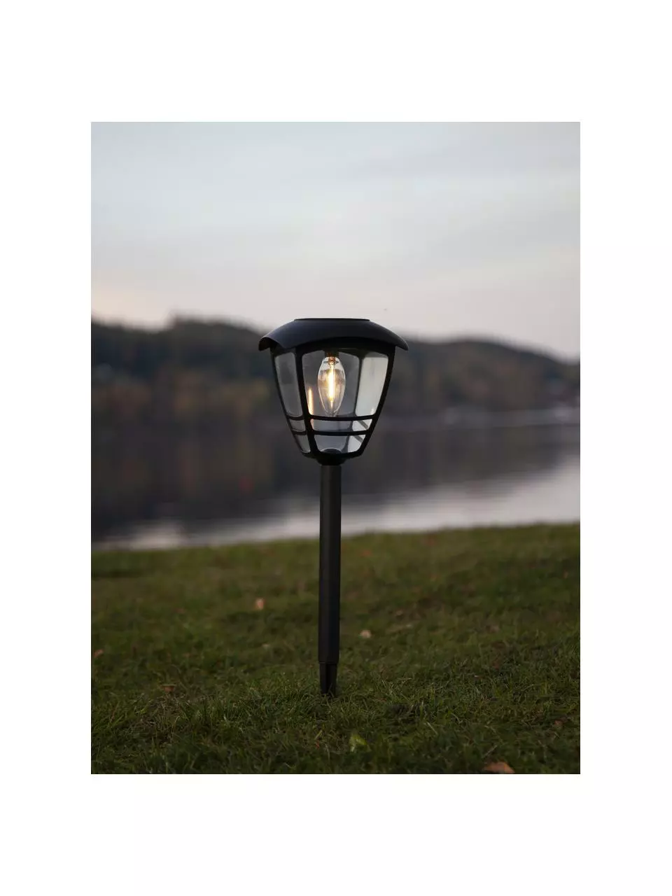 Die Leuchte kann mit dem Erdspieß im Boden befestigt werden