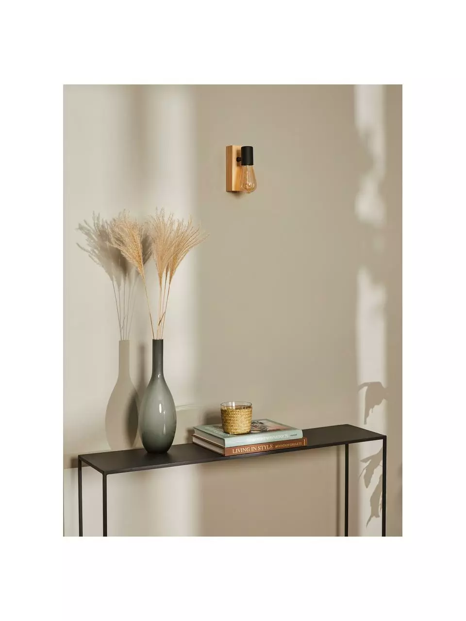 – Wandleuchte aus Holz mit sichtbarer Holzmaserung