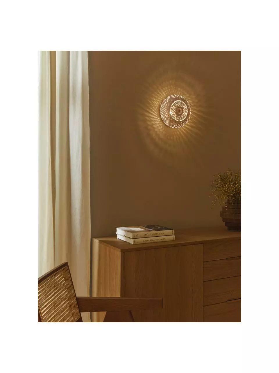 Unser neues Highlight befindet sich jetzt an der Zimmerwand: „Evelyn“, die Wandleuchte aus Bambusgeflecht spendet nicht nur Licht, sie wirft on top auch noch ein schönes Muster an die Wand, sobald sie eingeschaltet ist. Wir lieben das einzigartige Naturprodukt im Natural-Style, das nicht zu auffällig aber trotzdem ein Eyecatcher ist. Und Sie?