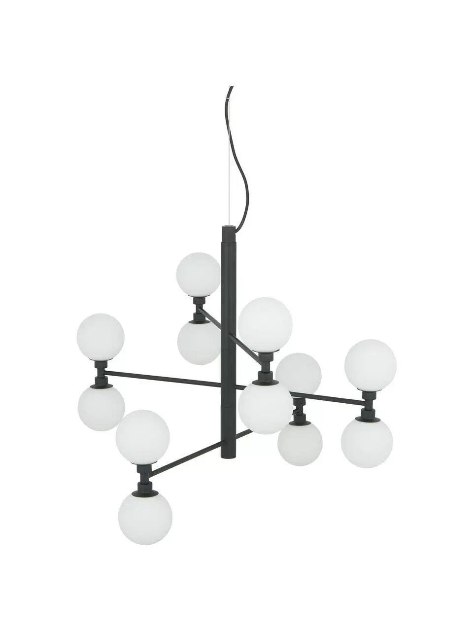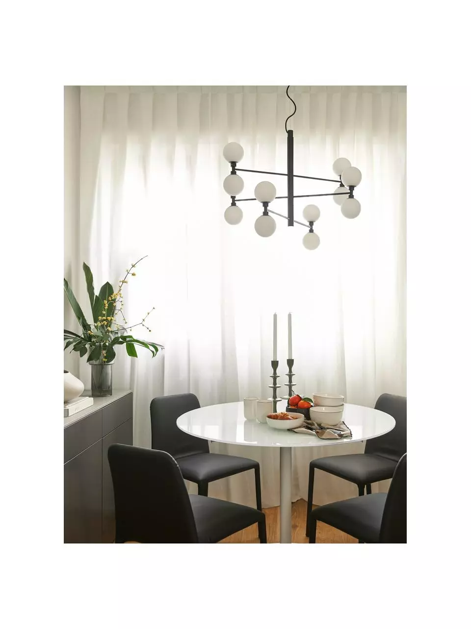 Voilà, die moderne Interpretation des Kronleuchters, die den ganzen Raum ausleuchtet: Unsere „Grover“ Serie mit kugelförmigen Lampenschirmen aus semitransparentem Opalglas. Für alle, die es glamourös mögen gibt es sie in glänzendem Gold und Silber, wer es lieber modern mag, bestellt sie in mattem Schwarz oder Weiß.