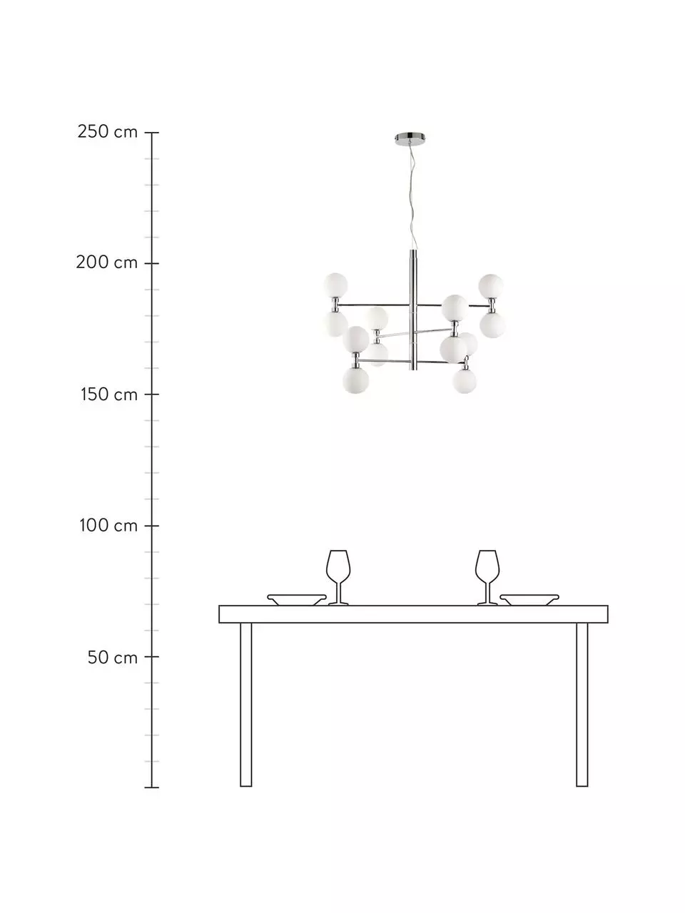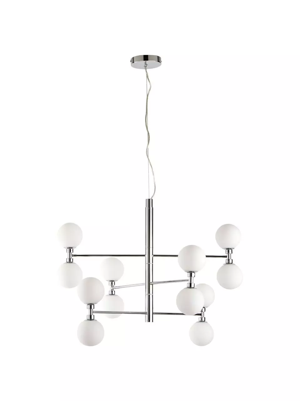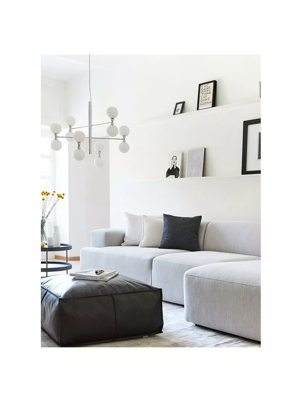 Voilà, die moderne Interpretation des Kronleuchters, die den ganzen Raum ausleuchtet: Unsere „Grover“ Serie mit kugelförmigen Lampenschirmen aus semitransparentem Opalglas. Für alle, die es glamourös mögen gibt es sie in glänzendem Gold und Silber, wer es lieber modern mag, bestellt sie in mattem Schwarz oder Weiß.