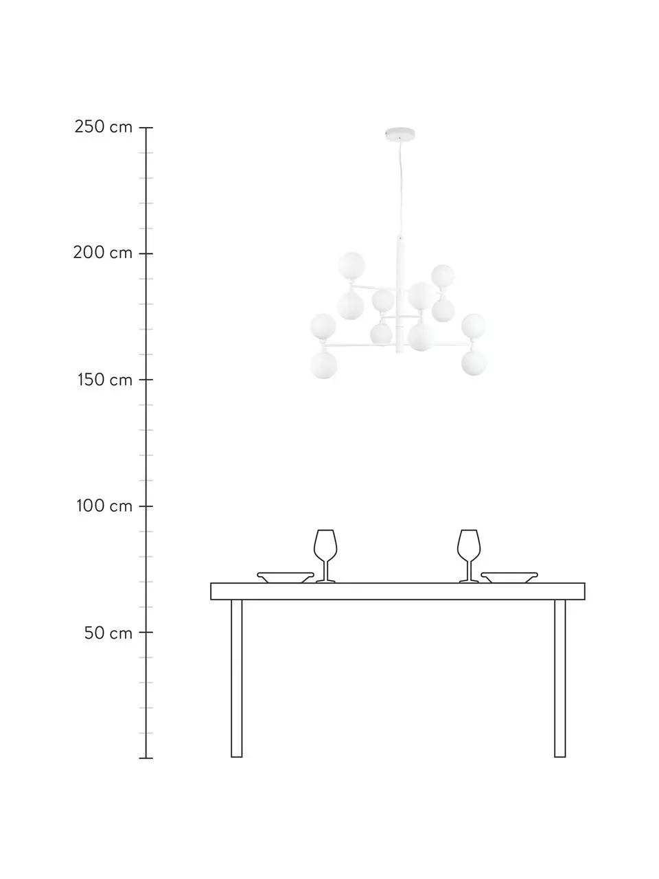 Abhängung von der Decke: höhenverstellbar von H 56 cm bis H 156 cm