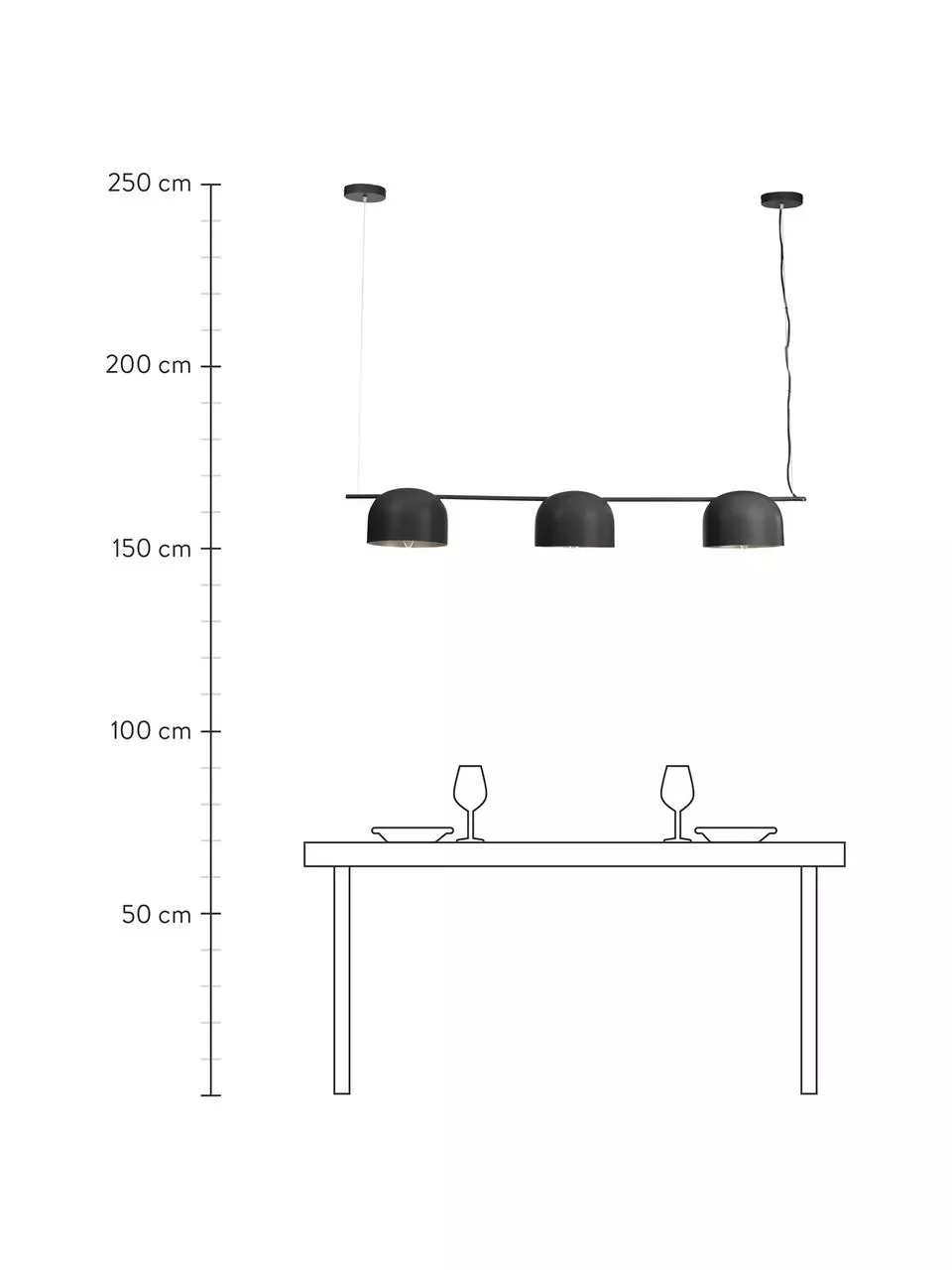 Abhängung von der Decke: höhenverstellbar min. 90 cm bis max. 150 cm