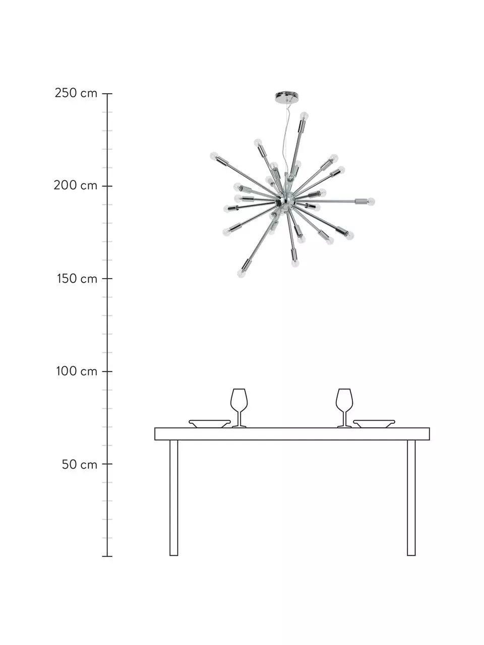 Die Pendelleuchte ist sehr groß und hat ein Eigengewicht von 4 kg. Durch den großen Durchmesser wirkt diese XL-Leuchte am besten bei Deckenhöhen ab 3 m. Ein Montageaufwand von etwa 10 Minuten ist erforderlich.