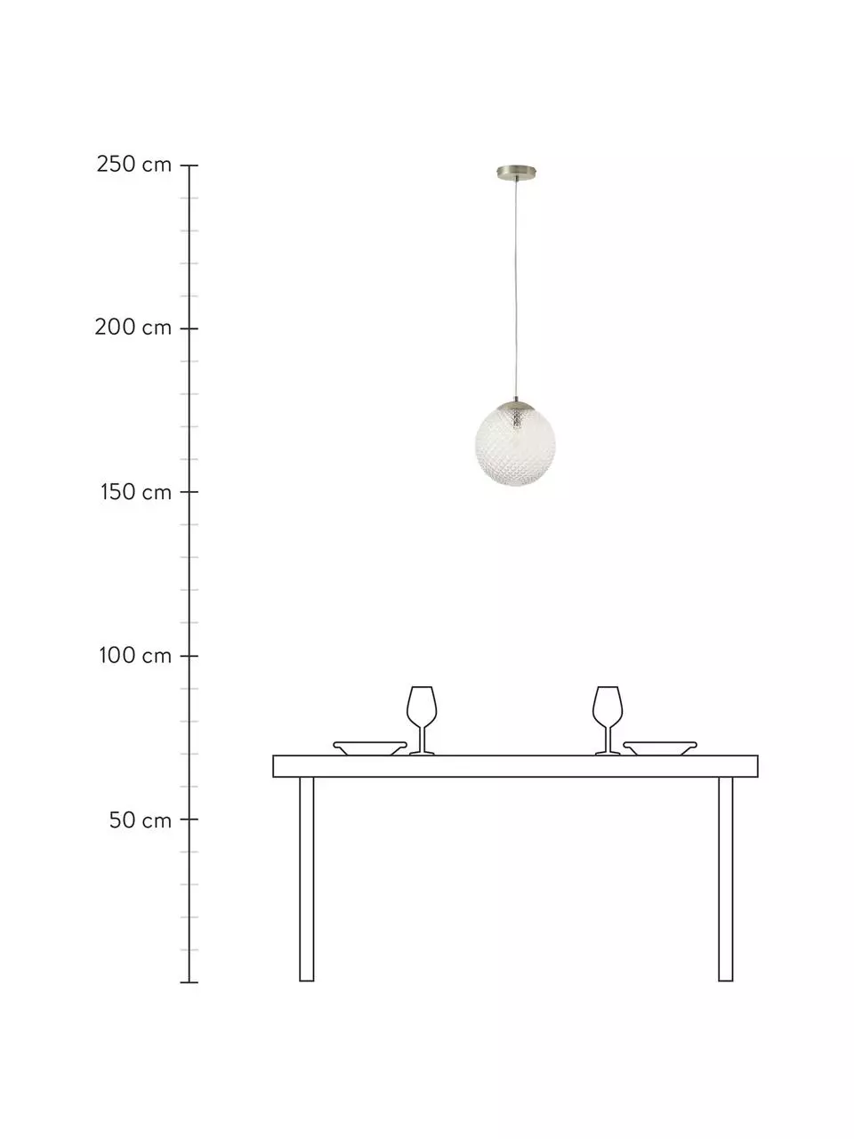 Abhängung von der Decke: höhenverstellbar bis max. H 150 cm