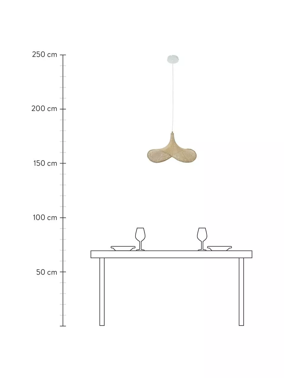 Abhängung von der Decke: höhenverstellbar bis max. H 150 cm