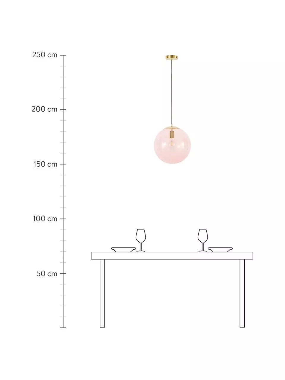 Abhängung von der Decke: höhenverstellbar bis max. H 191 cm
