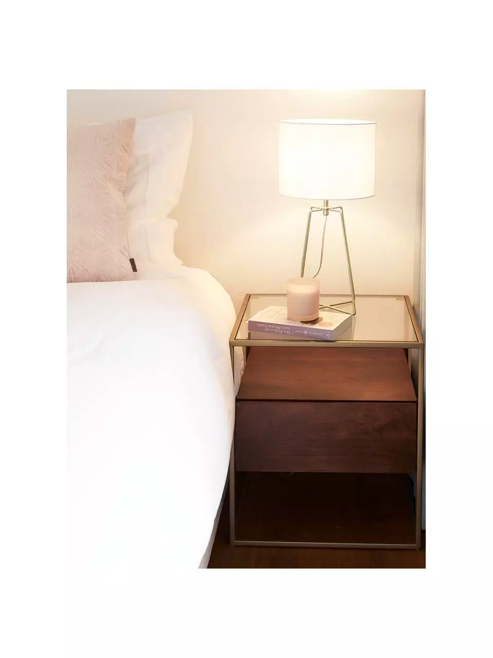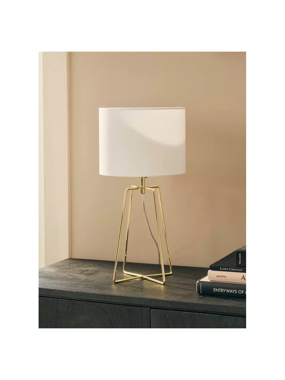– Elegantes Design dank feinem Metallfuß in Gold
