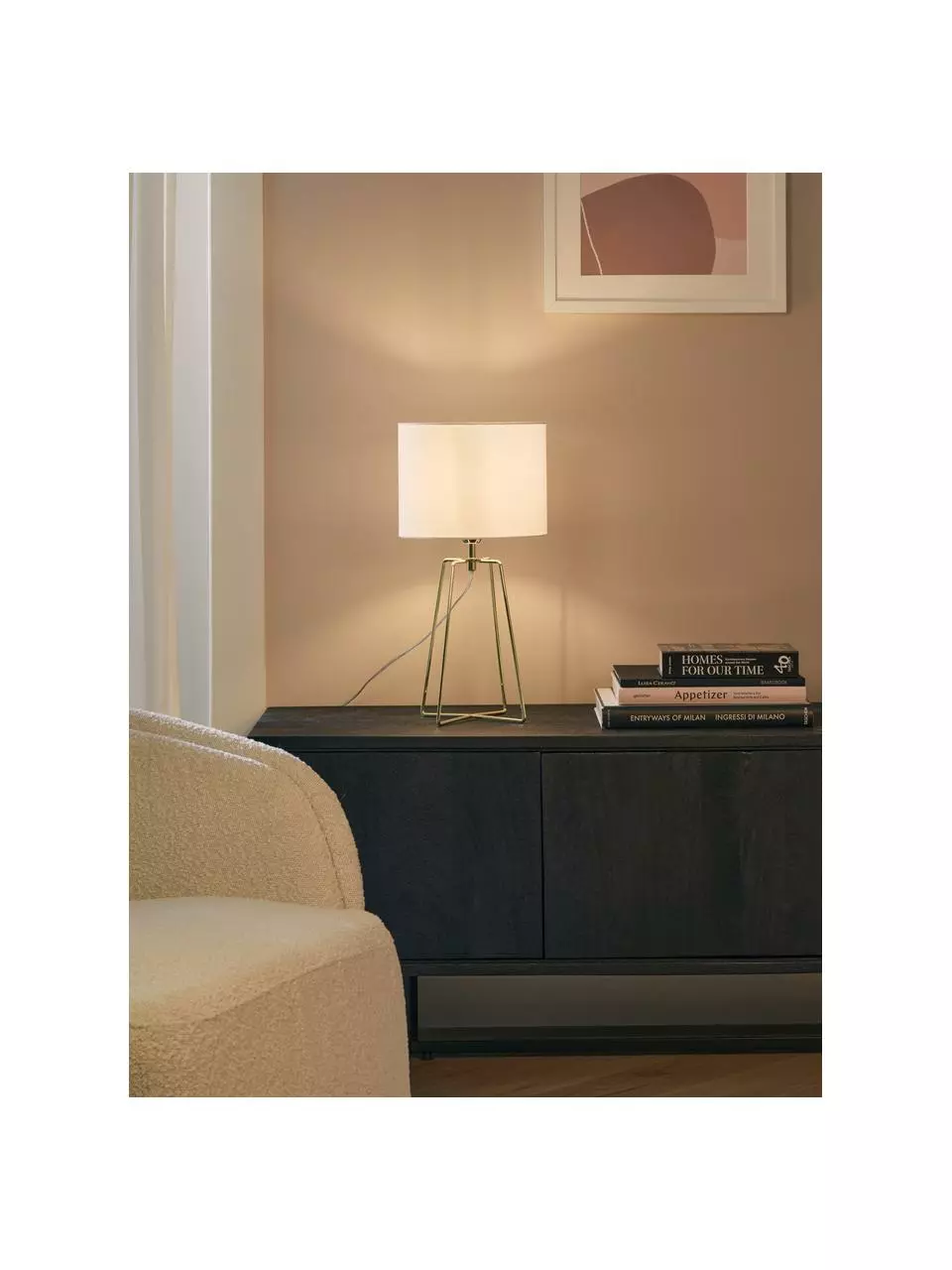 – Tischlampe mit schlichtem Stoffschirm