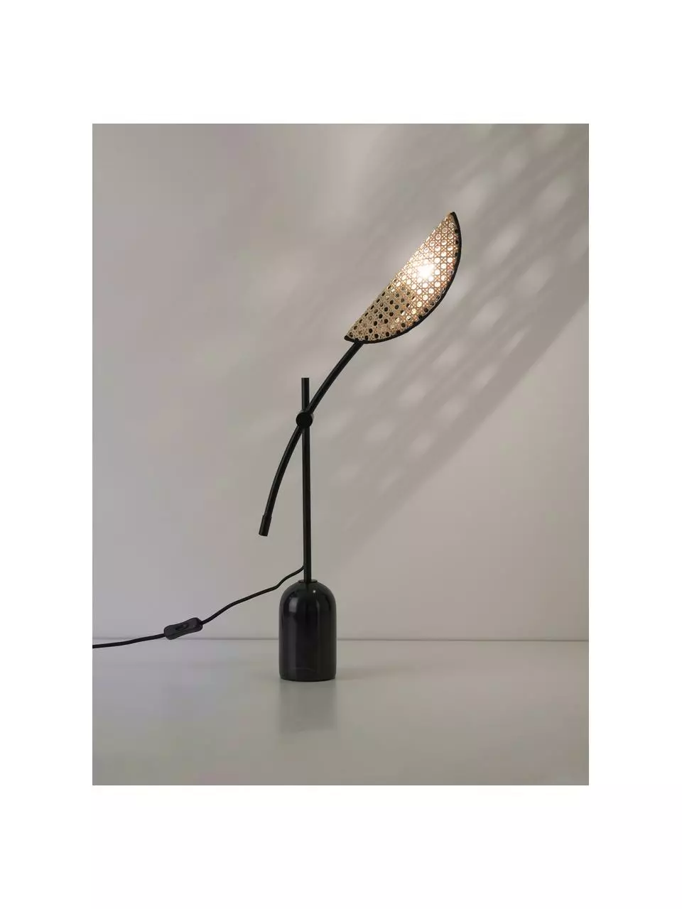 Der Lampenarm kann horizontal geschwenkt werden, der Lampenschirm kann in individuelle Richtungen gedreht werden. Die Höhe ist nicht verstellbar.