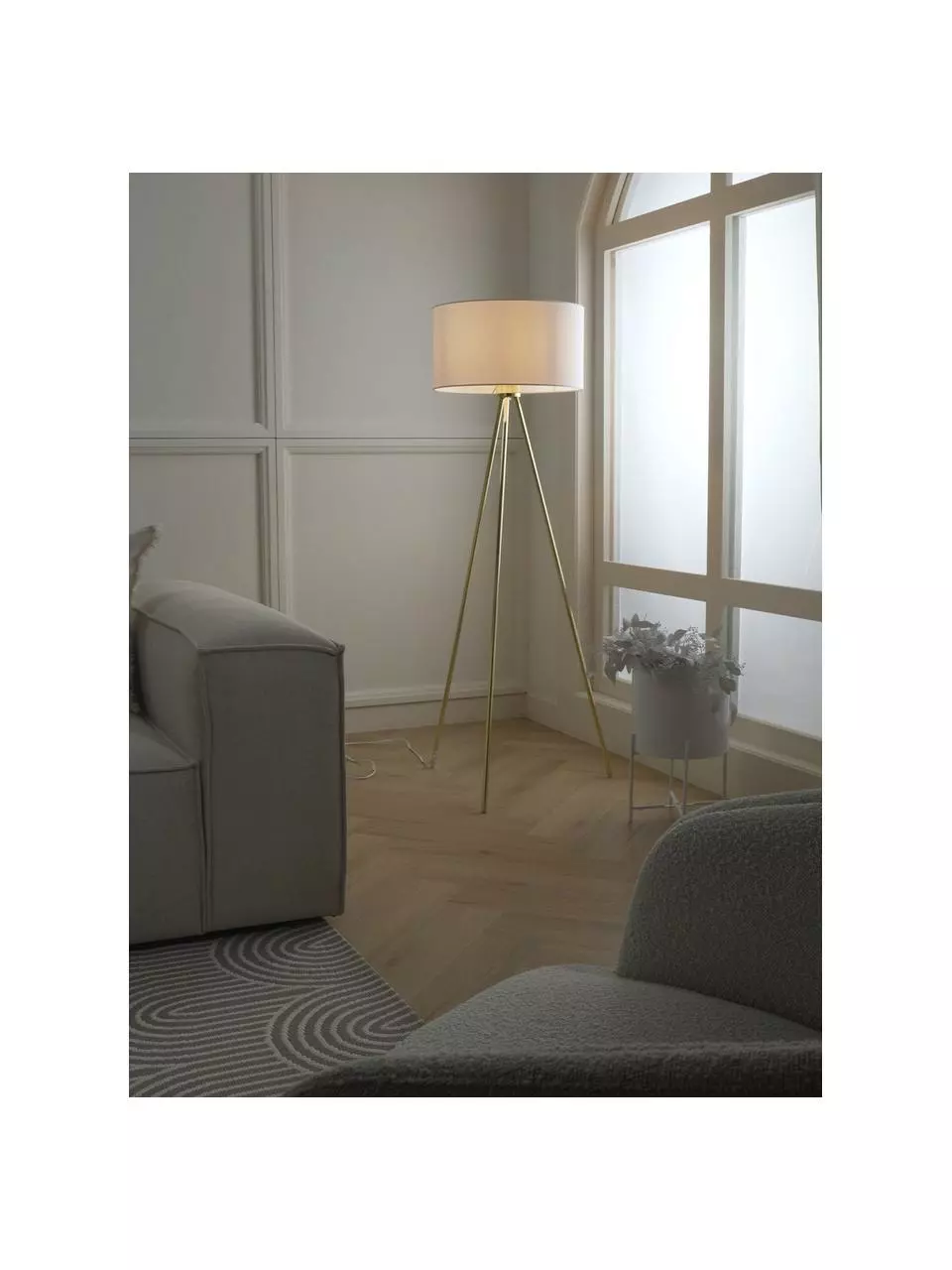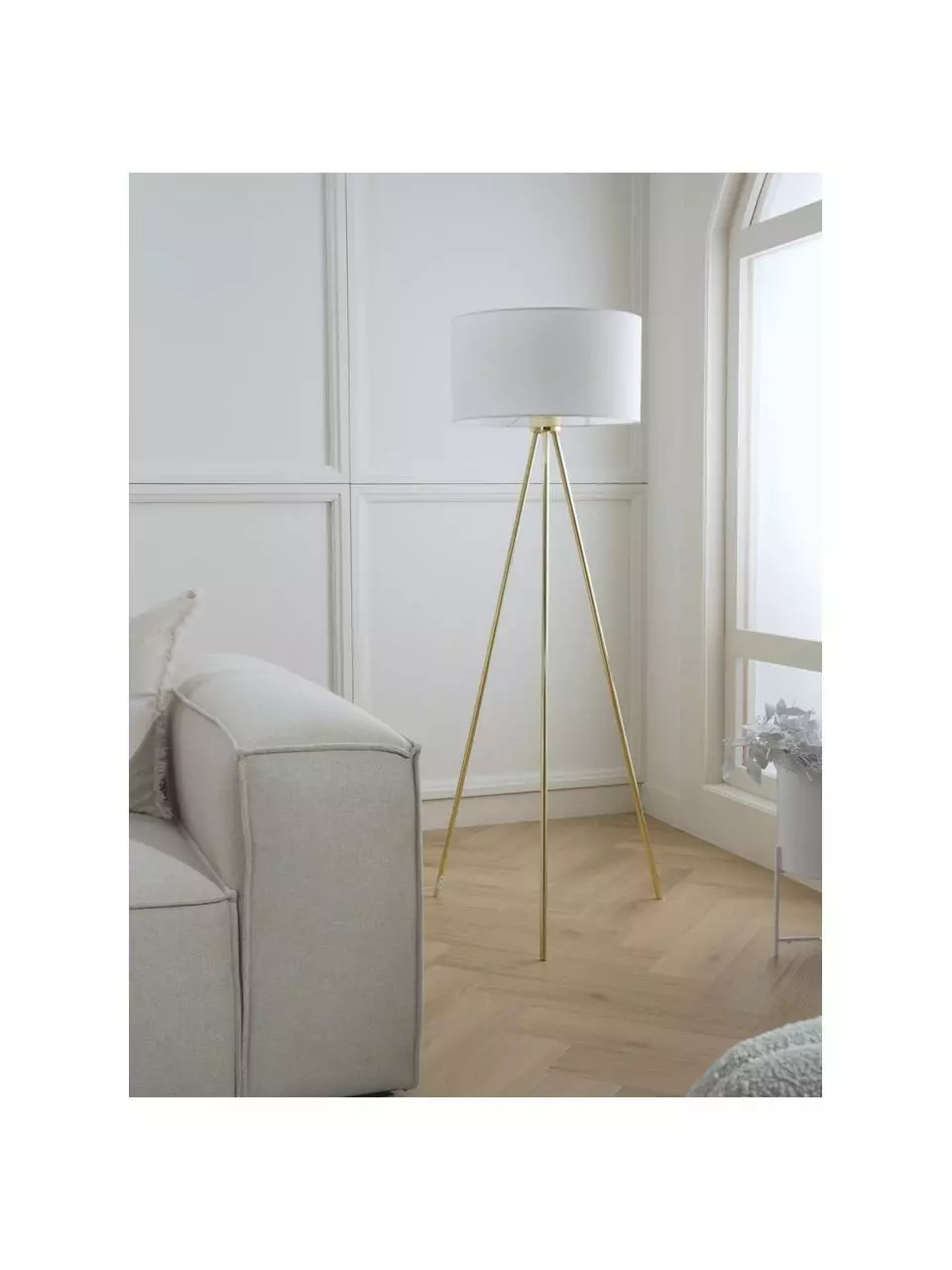 Grazil, elegant & überall einsetzbar: Die Tripod-Stehlampe Cella ist ein schönes Basic für Ihr Zuhause. Entweder modern, unifarben mit matten Oberflächen, oder mit gold-glänzendem Lampenfuß für den leichten Glam-Touch.